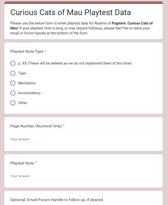 I've got the next section of our Curious Cats of Mau draft manuscript today, and we're starting to get into some of the systems and rules chapters a bit. It's not just numbers and lists though, today is all about creating your cat character and making them a part of this fun and fantastic setting.